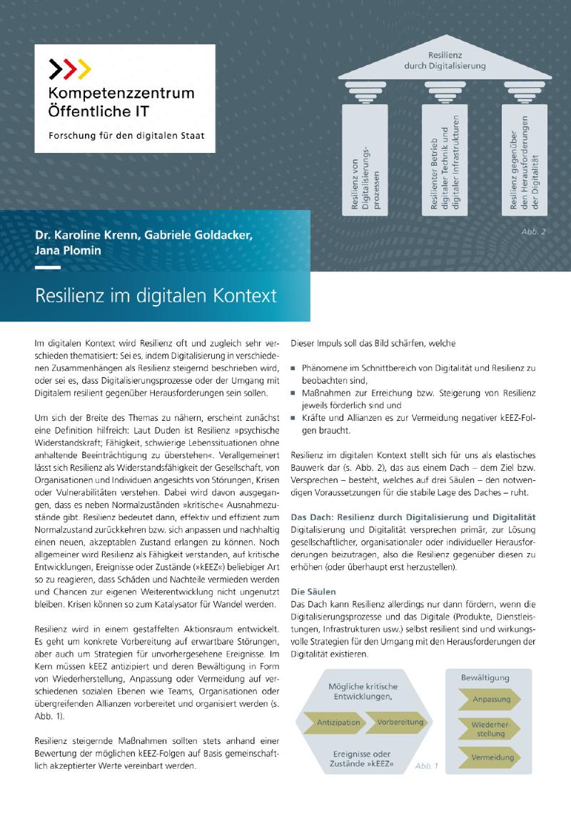 Wie das Gemeinwesen seine Resilienz stärken kann, ist gerade angesichts gegenwärtiger Krisen ein brandaktuelles Thema. Dieser Impuls beschreibt anhand eines Gebäudes als Analogie Beiträge von Digitalisierung und Digitalität zur Resilienz des Gemeinwesens (»Dach«), vor allem aber zentrale Voraussetzungen (»Säulen«) hierfür, nämlich die Resilienz von Digitalisierungsprozessen, den resilienten Betrieb digitaler Technik und digitaler Infrastrukturen sowie die Resilienz im Umgang mit den Herausforderungen der Digitalität. Wir geben damit einen Überblick über Maßnahmen und Strategien, die den Weg in eine resilient digitale Zukunft weisen.
