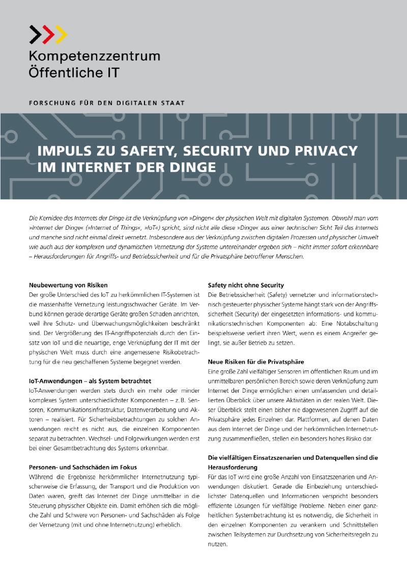 Die Kernidee des Internets der Dinge ist die Verknüpfung von »Dingen« der physischen Welt mit digitalen Systemen. Obwohl man vom »Internet der Dinge« (»Internet of Things«, »IoT«) spricht, sind nicht alle diese »Dinge« aus einer technischen Sicht Teil des Internets und manche sind nicht einmal direkt vernetzt. Insbesondere aus der Verknüpfung zwischen digitalen Prozessen und physischer Umwelt wie auch aus der komplexen und dynamischen Vernetzung der Systeme untereinander ergeben sich – nicht immer sofort erkennbare – Herausforderungen für Angriffs- und Betriebssicherheit und für die Privatsphäre betroffener Menschen.